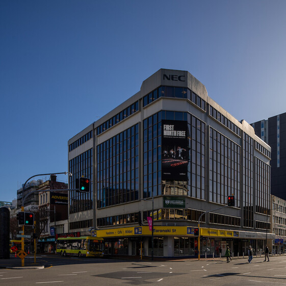 Located in the heart of the entertainment district, this building has 6 floors of office space, with great views over Taranaki, Manners and Dixon Street. The building provides plenty of natural light throughout each floor. Ground floor contains number of retail tenancies including a grocery store, café and restaurant. Carparking is located in the basement. A seismic upgrade programme is currently underway.
