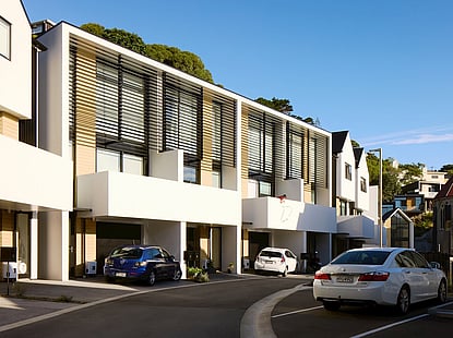 The design (Tobin Smith of Colab) was the winner of the multi-unit residential category in the 2023 Wellington Architecture Awards, with the judges citation noting: "The former site of Erskine College and Chapel has been developed into 96 individual dwellings, connecting roads, car parking, stairs and paths, open space and landscaping. Dwellings are grouped together into bite-sized terraced blocks on the west-facing hill leading to the top of the site. Each block expresses individuality in differing roof forms, dwelling types and materiality. There is a generous amount of open space between the dwellings, and view shafts between buildings provide visual connection to the site and Island Bay beyond. Dwellings are well-planned and living spaces benefit from the outlook. The scale feels very domestic, is nicely broken up, and creates a comfortable living environment".